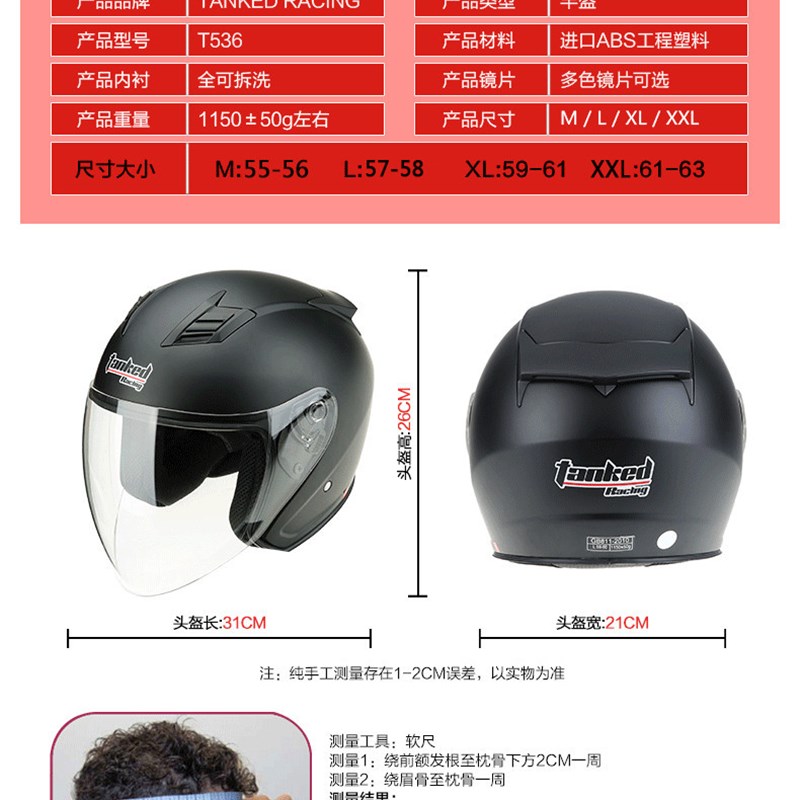 坦克头盔T536头盔大镜片电动车摩托车防风防R尘头盔半盔男女头盔 - 安瑞设计馆04