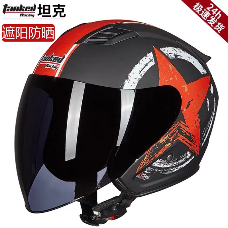 坦克头盔T536头盔大镜片电动车摩托车防风防R尘头盔半盔男女头盔