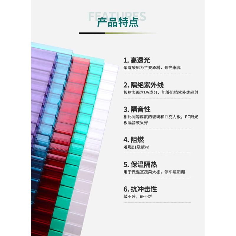 中空阳光板隔热防晒双蜂窝四层6/8/12mm聚碳酸酯PC阳光板温室车 - tb8626892375