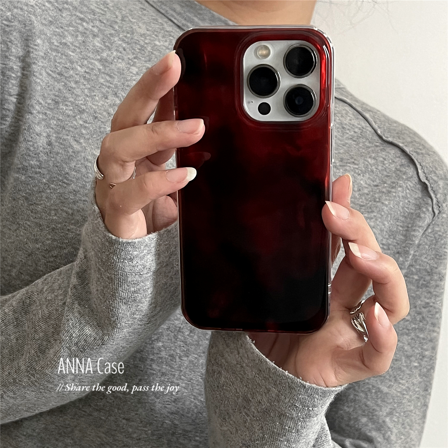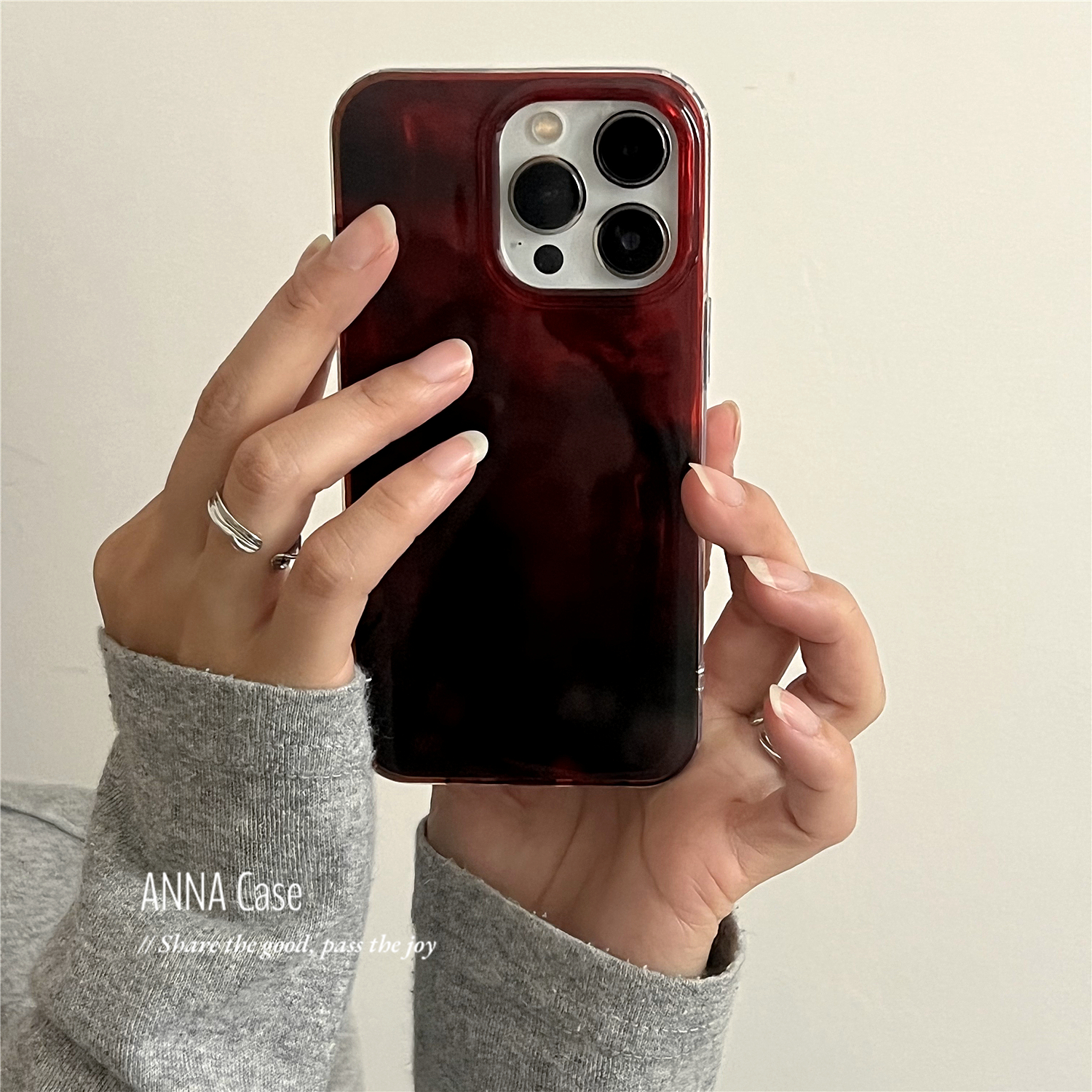 ANNACASE高级气质晕染安可拉红色适用苹果17promax手机壳iphone14小众15pro新款16全包软壳16pro防摔保护套13 - ANNA CASE