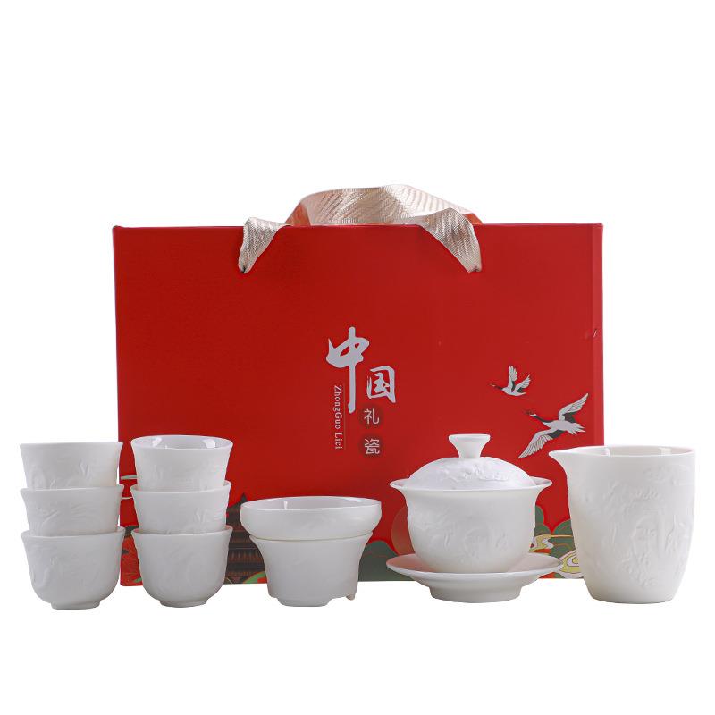 清明上河图功夫茶具套装白瓷外素内釉家用泡茶器茶杯办公商务礼品 - 炫赵柏商贸城