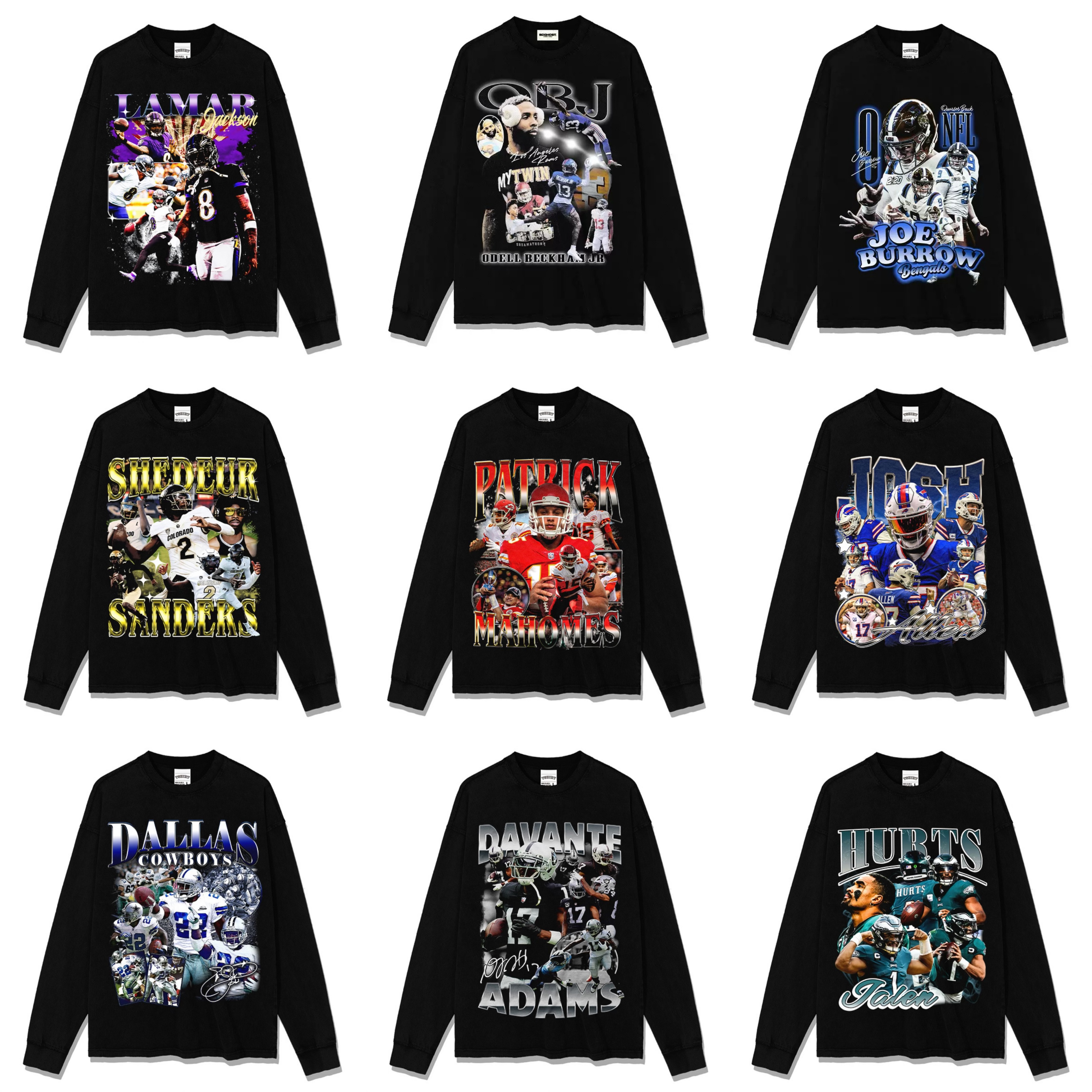 马霍姆斯贝克汉姆乔希艾伦乔伯罗橄榄球美式球星印花水洗宽松长袖