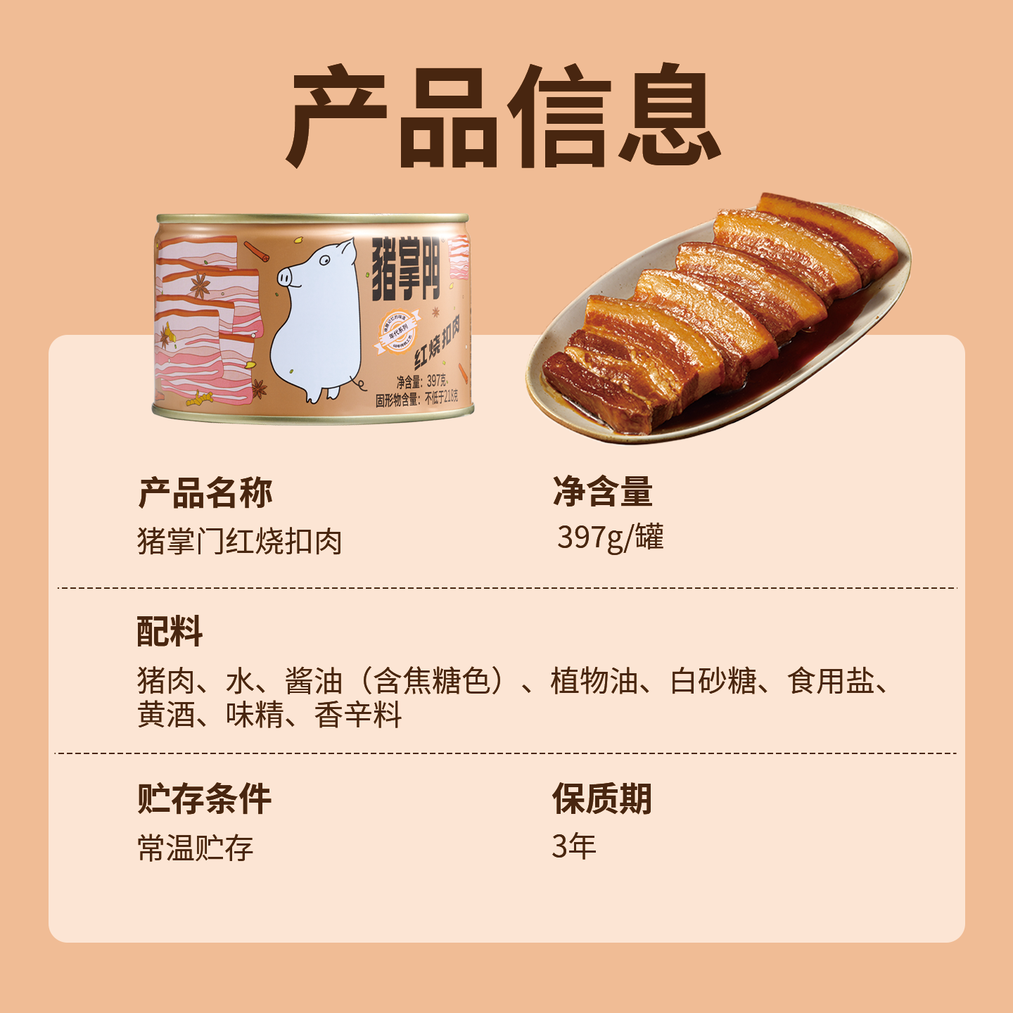 猪掌门红烧扣肉罐头下饭菜正宗蚌埠红烧肉罐头熟食长期储备预制菜