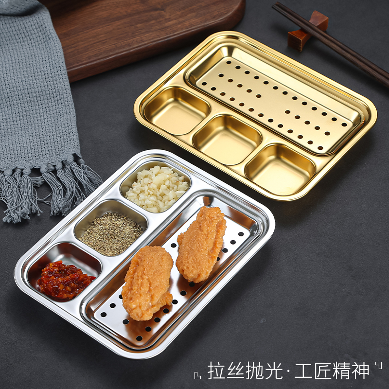 您的位置:他他商城  >   >  304韩式烤肉餐盘带三格味碟盘子沥水饺子盘小吃盘烤肉碟子牛排盘