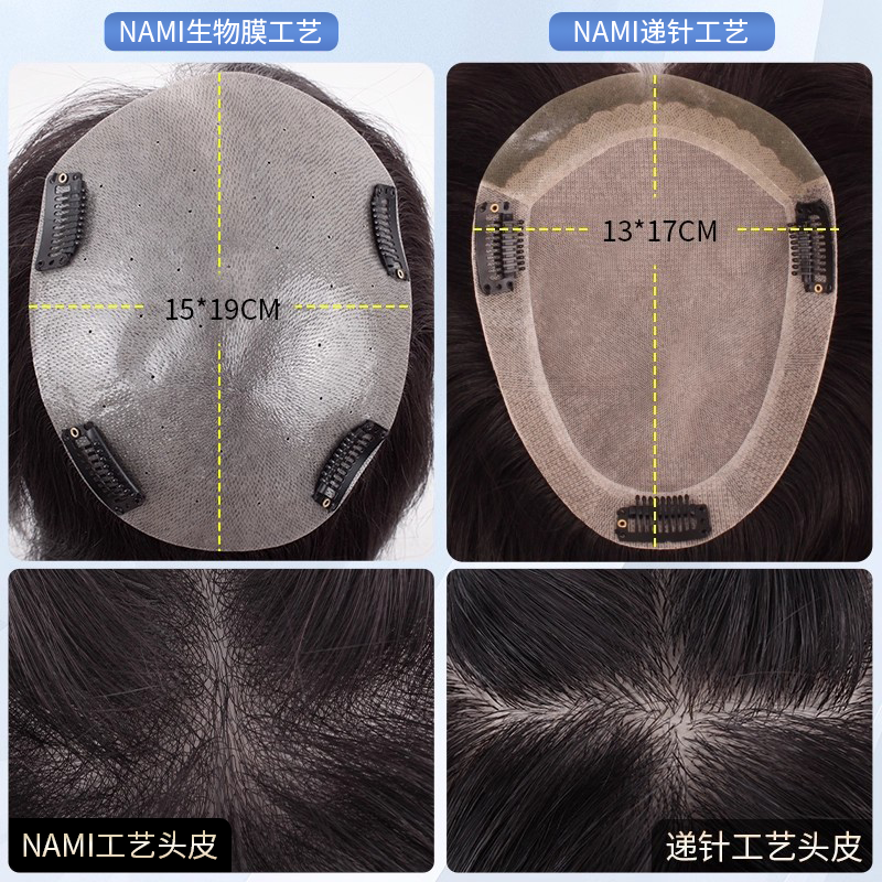 小野家假发片生物膜NAMI递针头顶补发片全真发人丝遮白发增加发量 - 小野家假发旗舰店