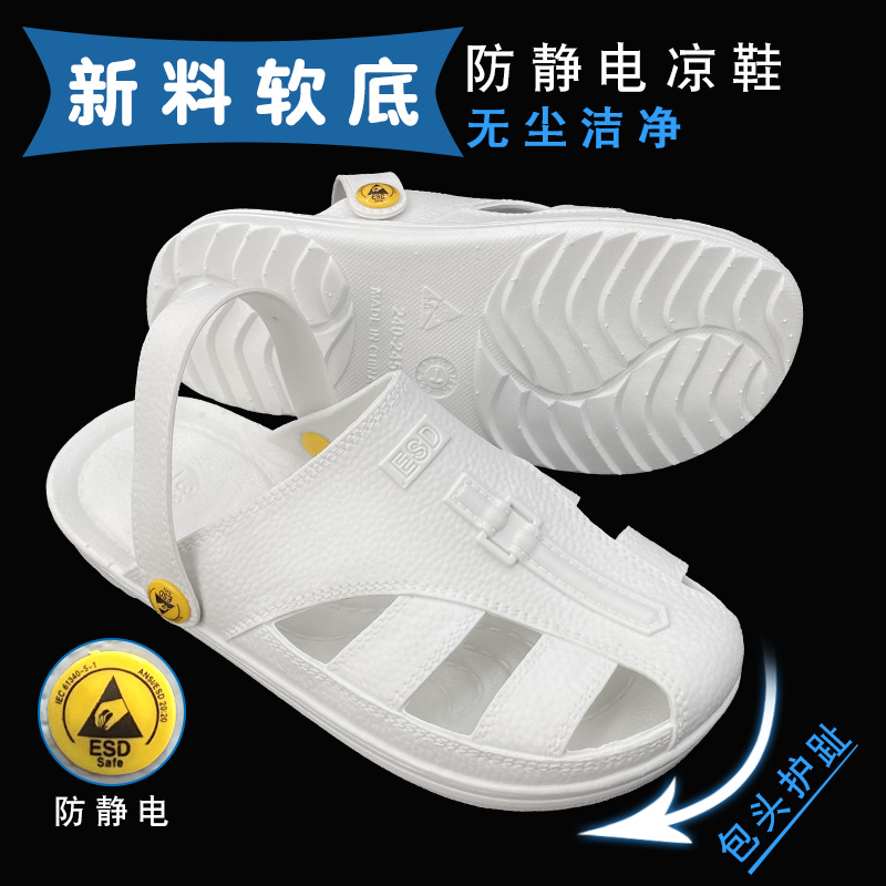 SPU防静电鞋拖鞋凉鞋包头护趾软底防滑透气耐磨无尘车间男女防护 - 华东防静电无尘净化用品