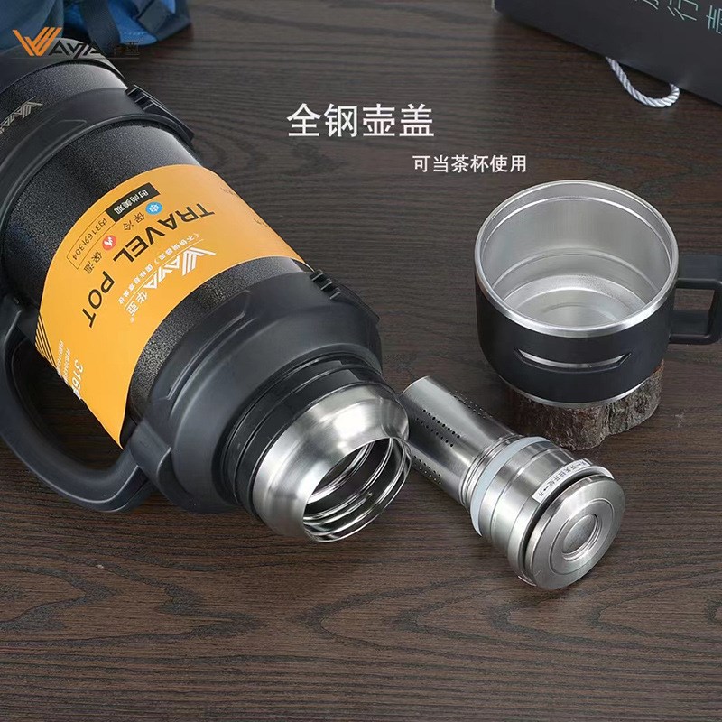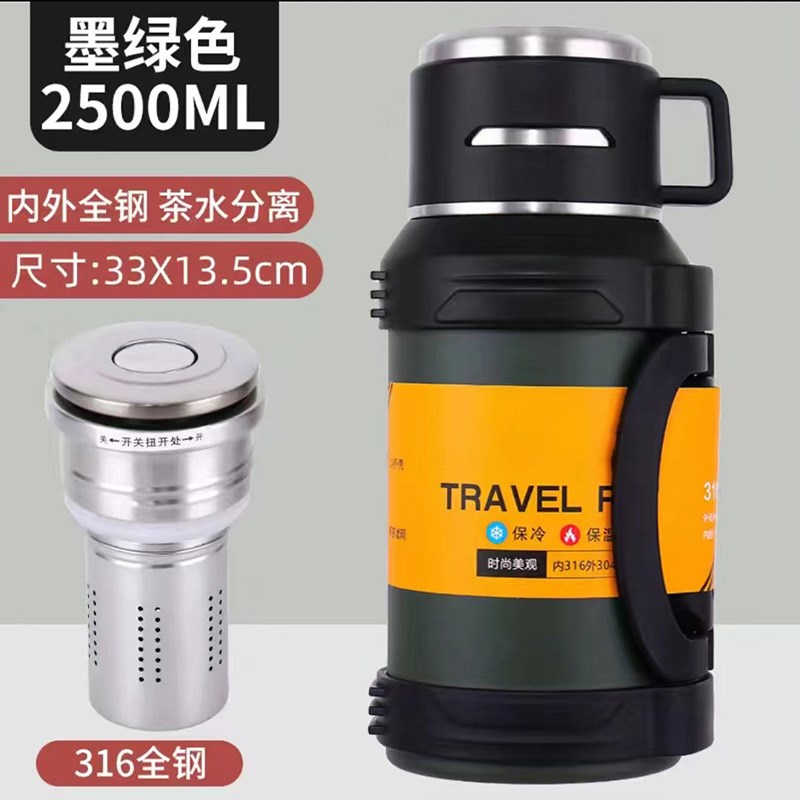 大容量保温壶316不锈钢车载水壶全钢盖内塞带滤网茶仓背带旅行壶