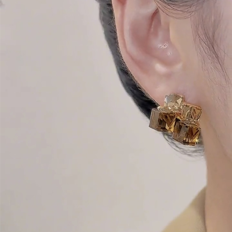 您的位置:他他商城  >  配饰  >  轻奢美拉德咖色锆石耳钉设计感立体方块水晶银针耳环气质百搭耳饰
