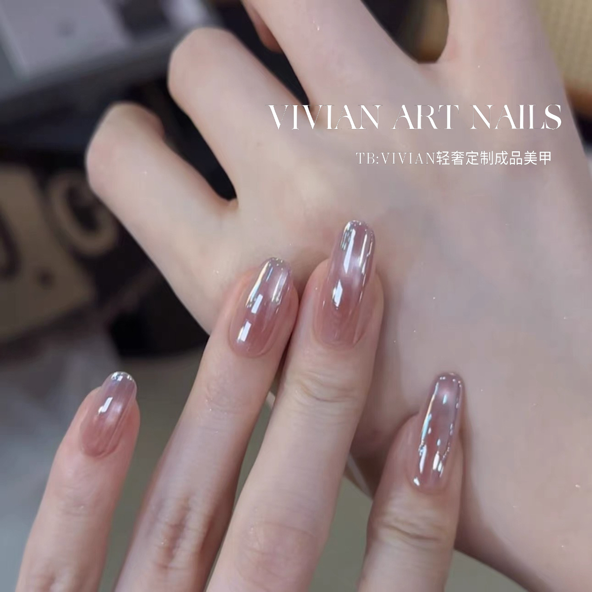 【紫凝晨露】Vivian电镀紫色猫眼纯欲裸色腮红纯手工穿戴甲Y812款 - VIVIAN轻奢定制成品美甲