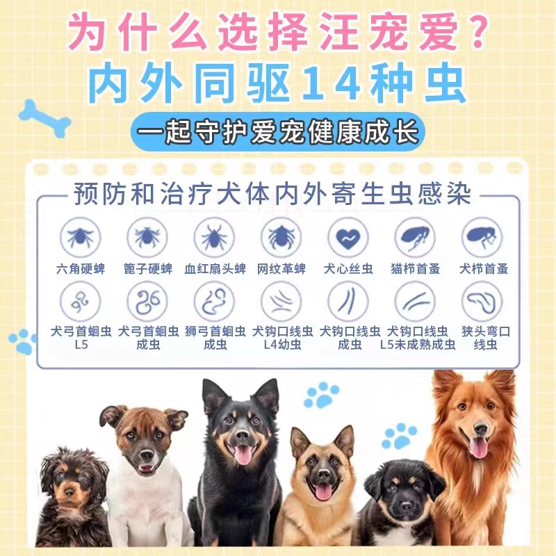 汪宠爱体内外驱虫药狗复方沙罗拉纳咀嚼片体内外一体犬用内外同驱 - 爱宠阁宠物医院