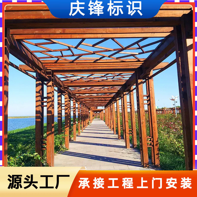 主题公园长廊通道古建工程旅史建设仿木纹地产不锈钢文化景观制作