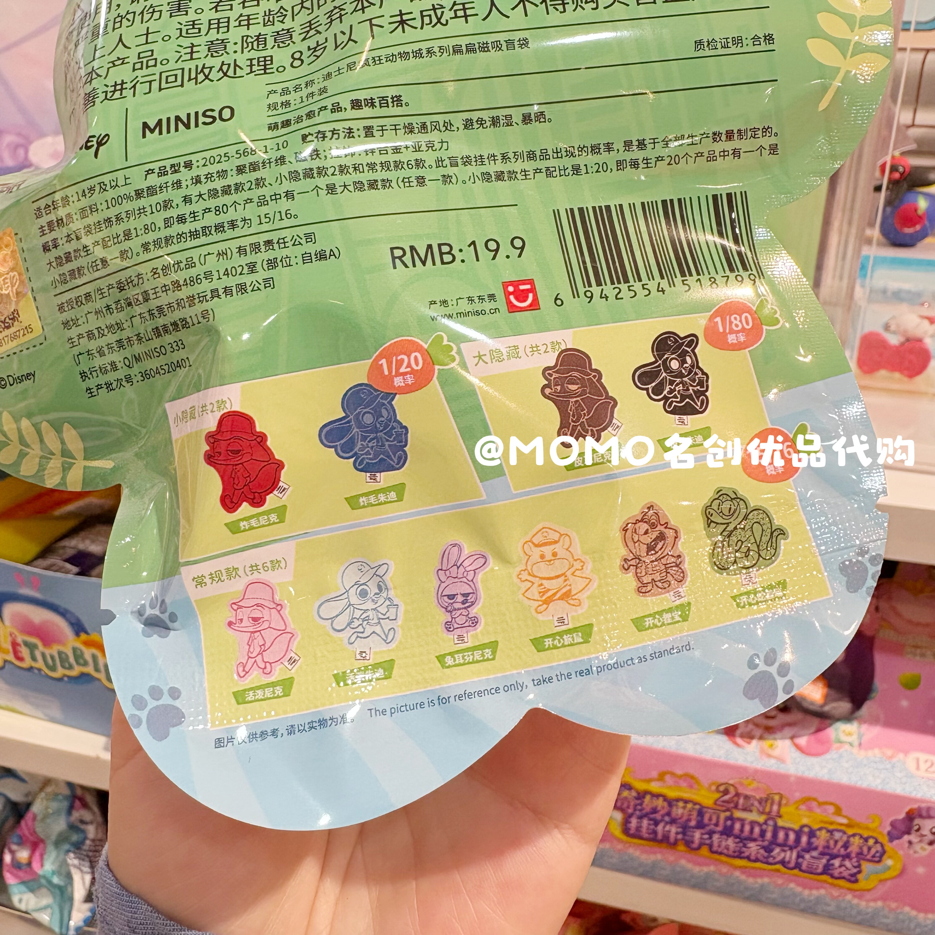 miniso名创优品迪士尼疯狂动物城磁吸盲袋可爱朱迪尼克毛绒小挂件 - MOMO名创优品代购