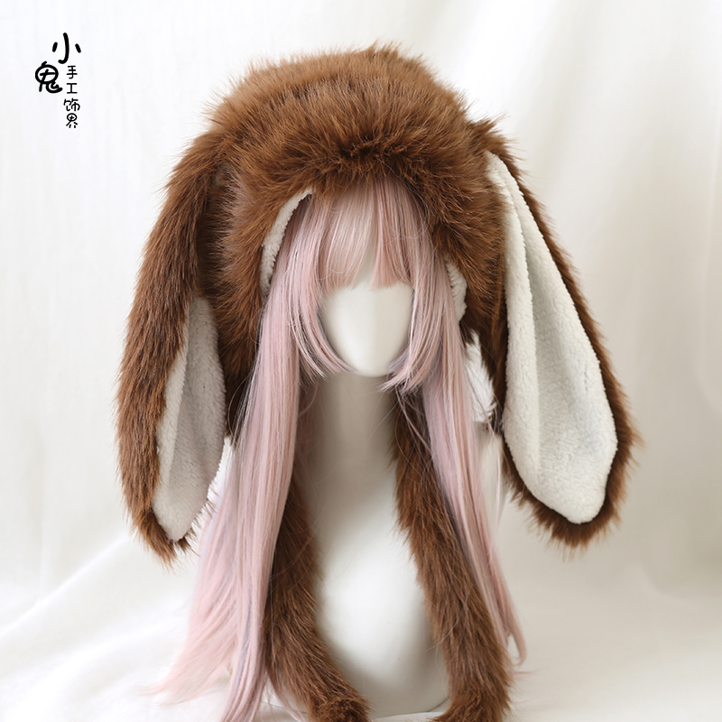 原创亚文化垂耳兔保暖帽Lolita可爱长兔耳朵毛绒雷锋帽仿貂绒帽子 - 小鬼手工饰界