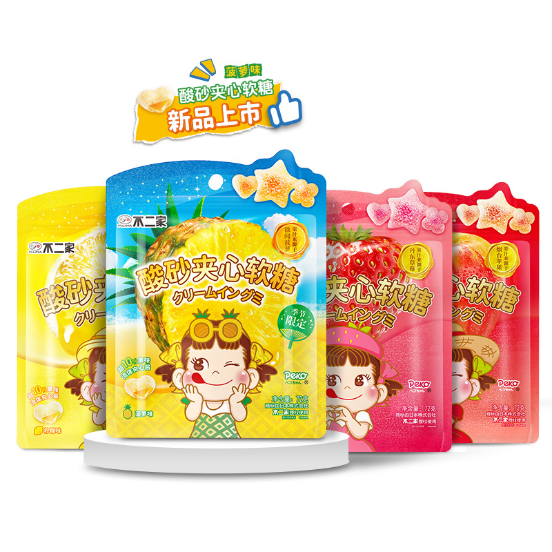 不二家酸砂夹心软糖72g袋装草莓苹果水果味Q弹儿童休闲零食袋装 - 百亿补贴品牌优选