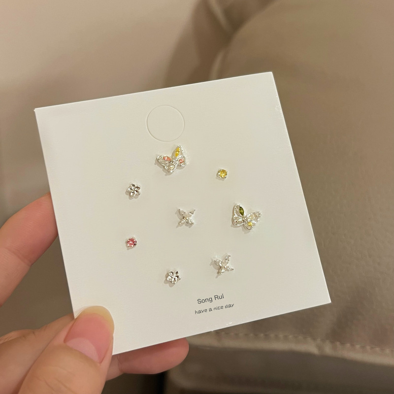 您的位置:他他商城  >   >  甜美彩色锆石蝴蝶925银耳钉套装甜美时尚精致女小众设计感耳饰