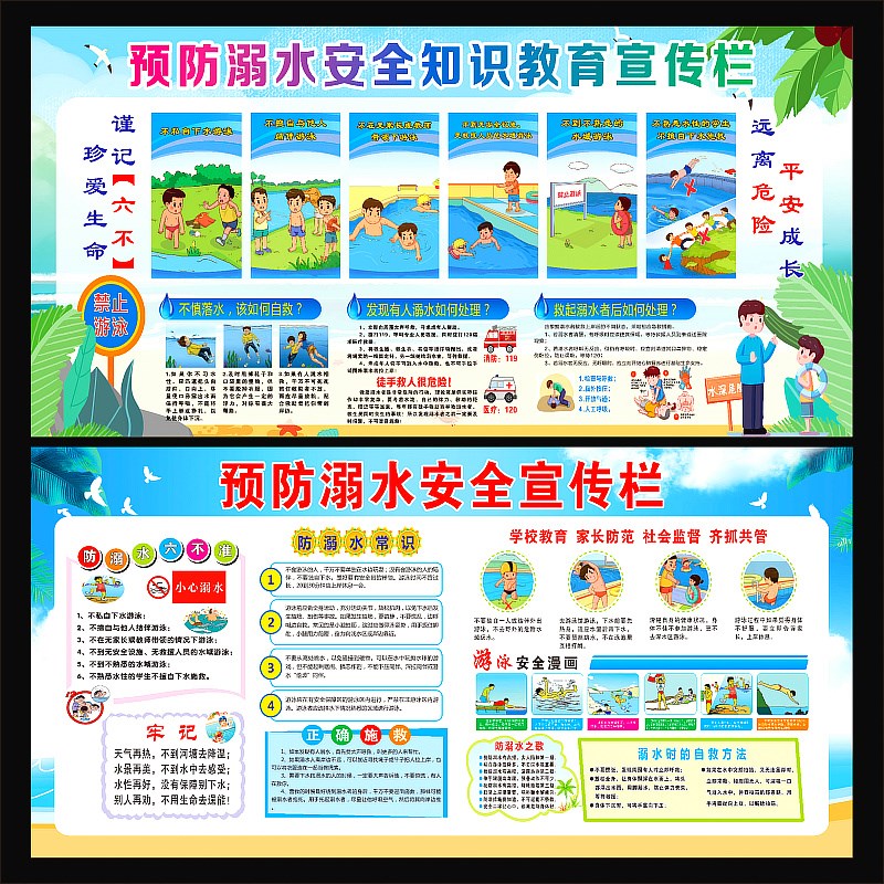 防溺水主题墙贴班级文化校园安全宣传海报自M救方法禁止游泳自粘 - yyqxdddttt的小店