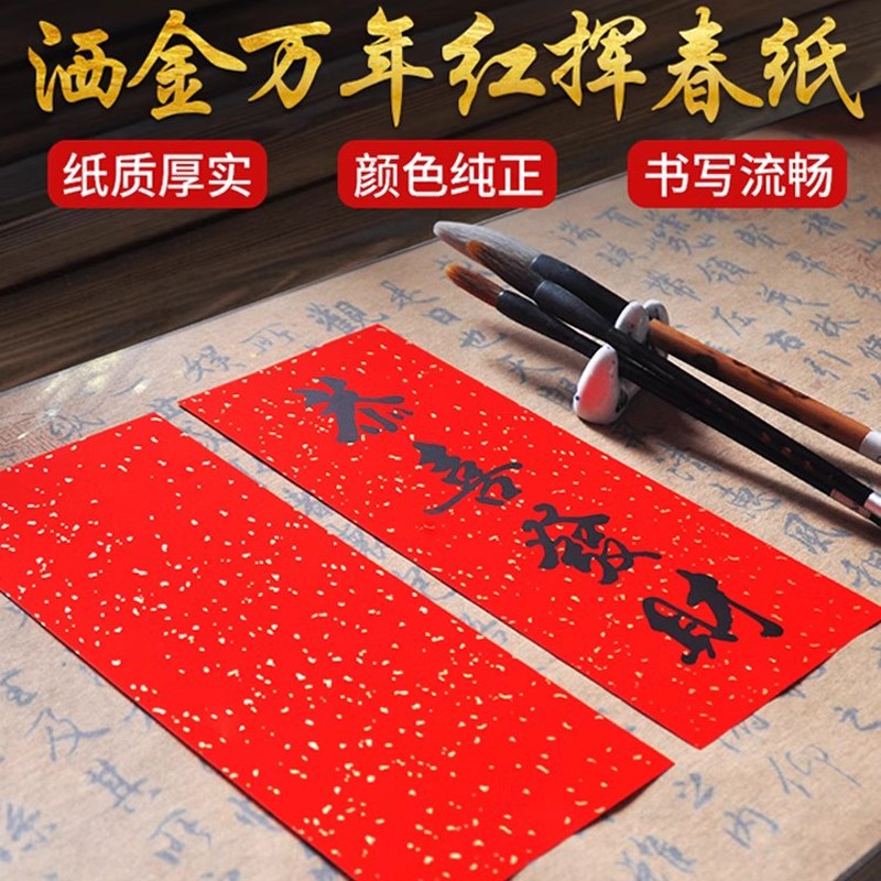 万年红铜版纸挥春四字汽车小对联洒金瓦I当红纸春节门头纸加厚耐 - tb89252788