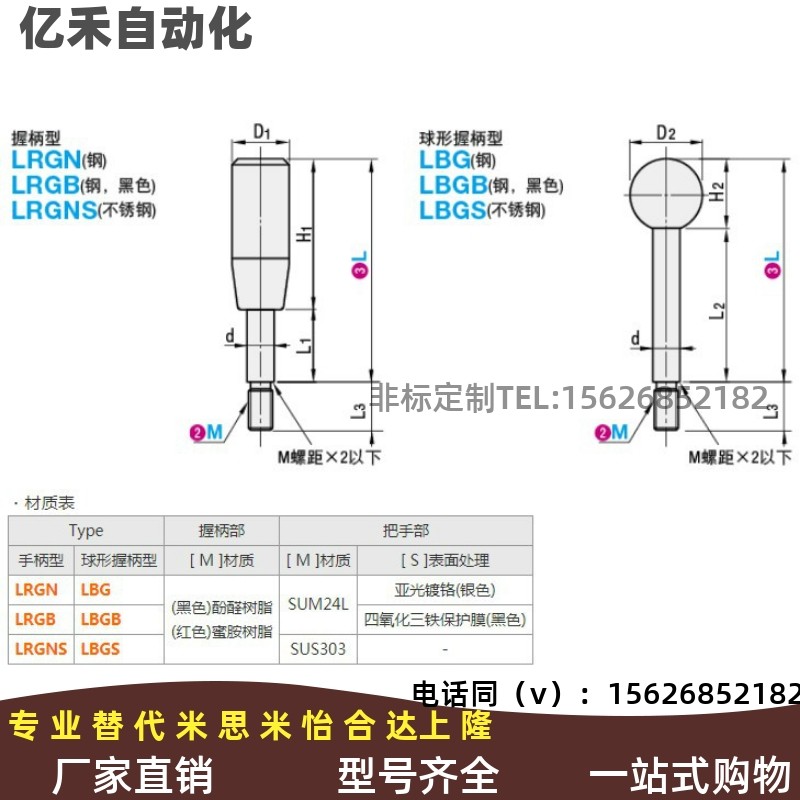 固定握柄长手柄LRGB/LBGB6/8/10/12-63/80/100/125/160/200-B/R - 东莞市亿禾自动化