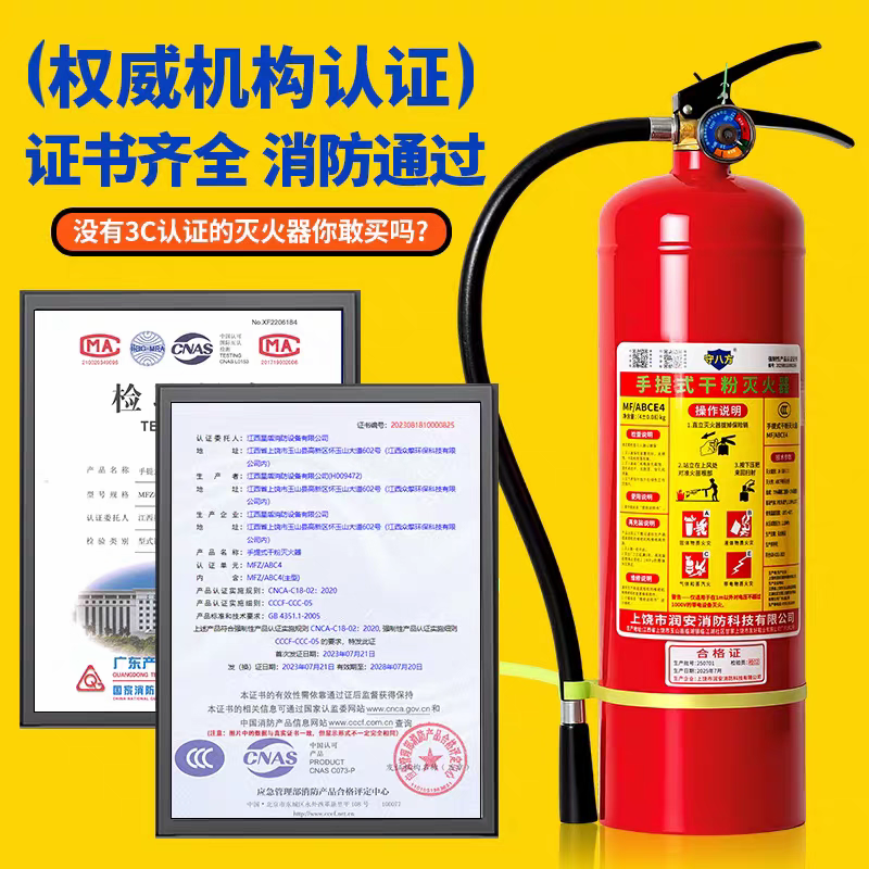 手提式4公斤干粉灭火器国标店用家用商铺用1/2/3/4/5/8kg消防器材