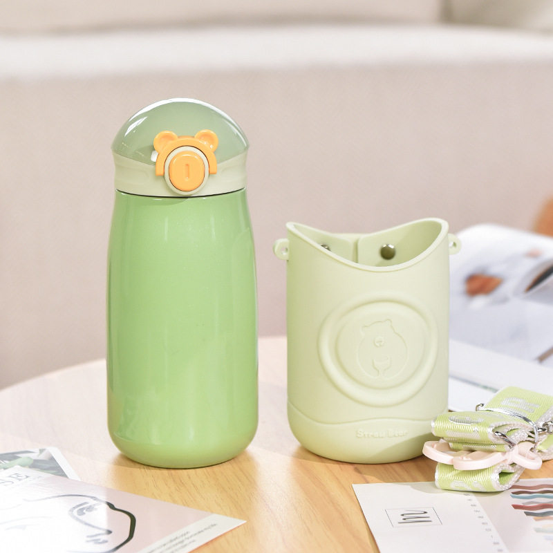 新款316不锈钢保温杯萌熊儿童水杯便携可爱学生吸管水壶大容量杯 - JYJY量子cup