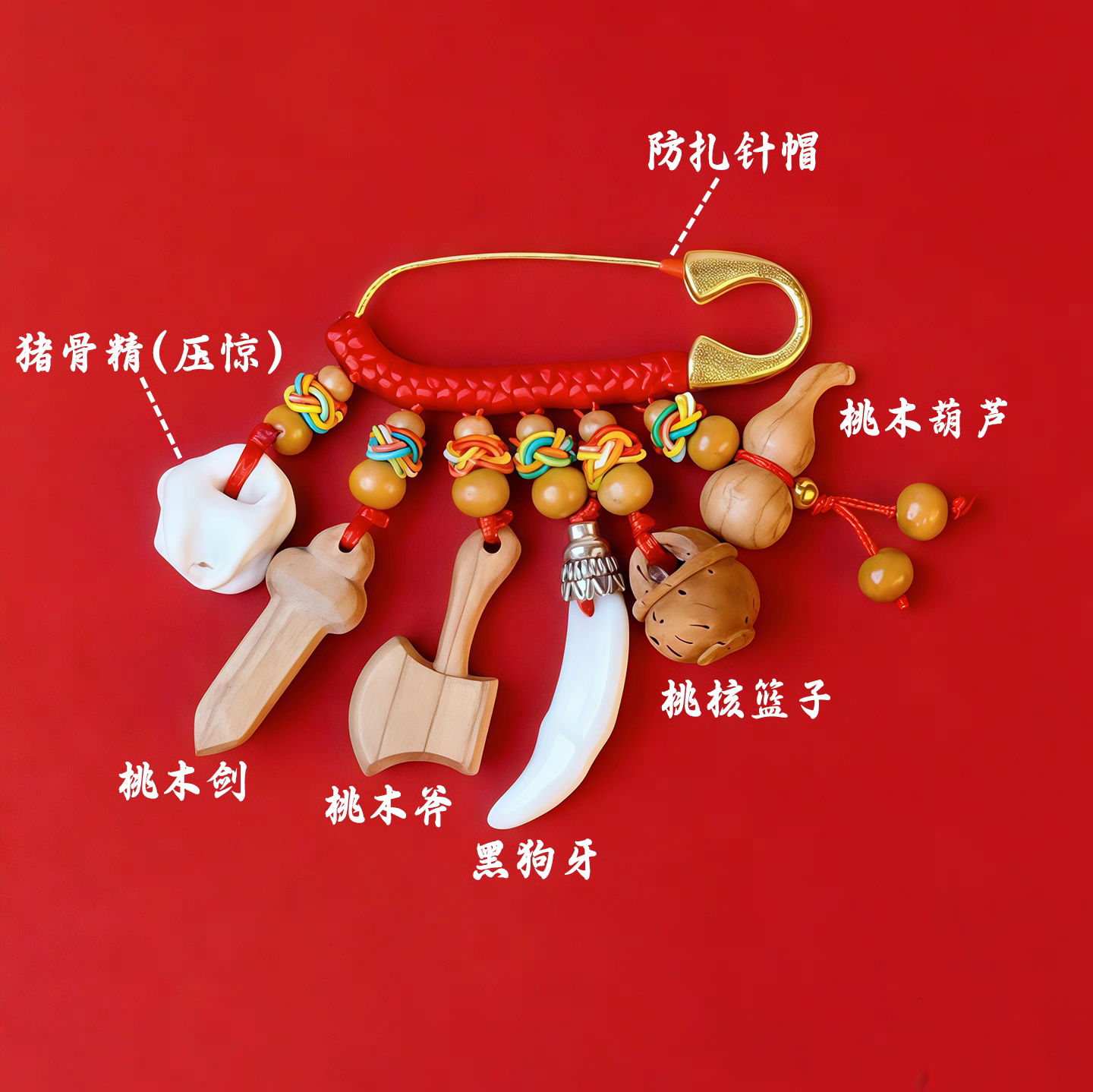 五台压惊别针婴儿平安黑狗牙孕妇小孩儿童外出受惊桃木葫芦挂件 - 五台山月盈阁祈福